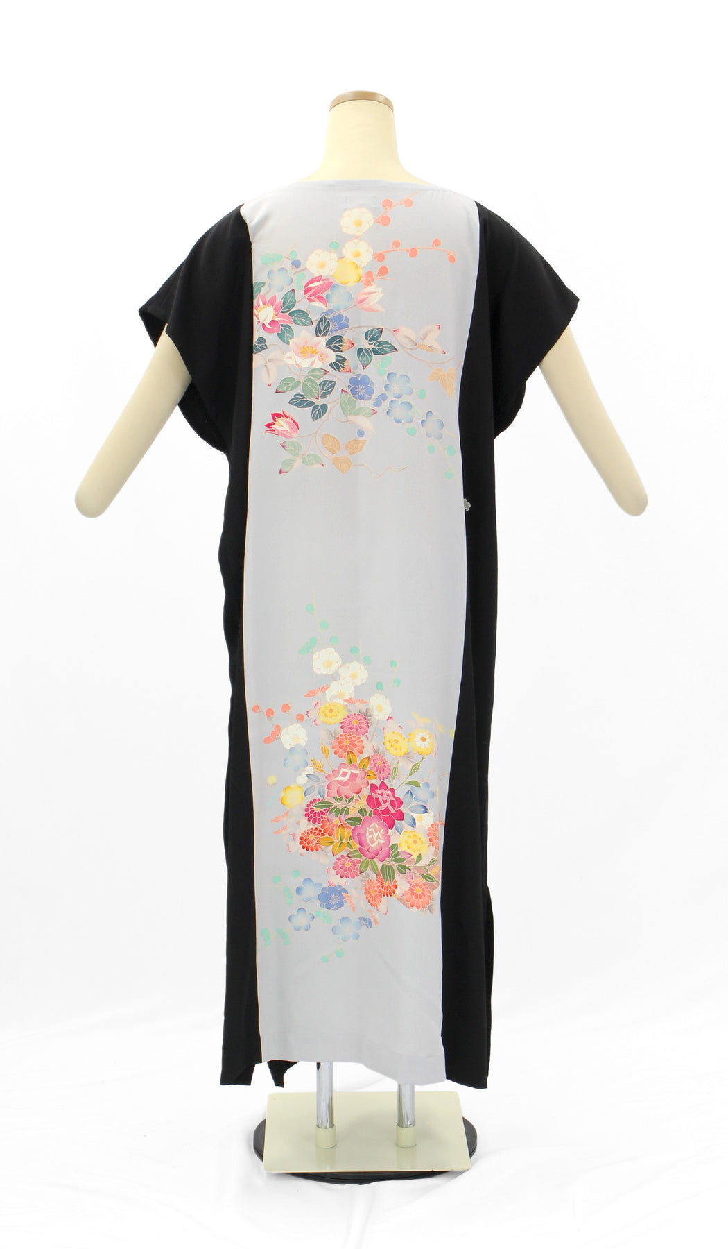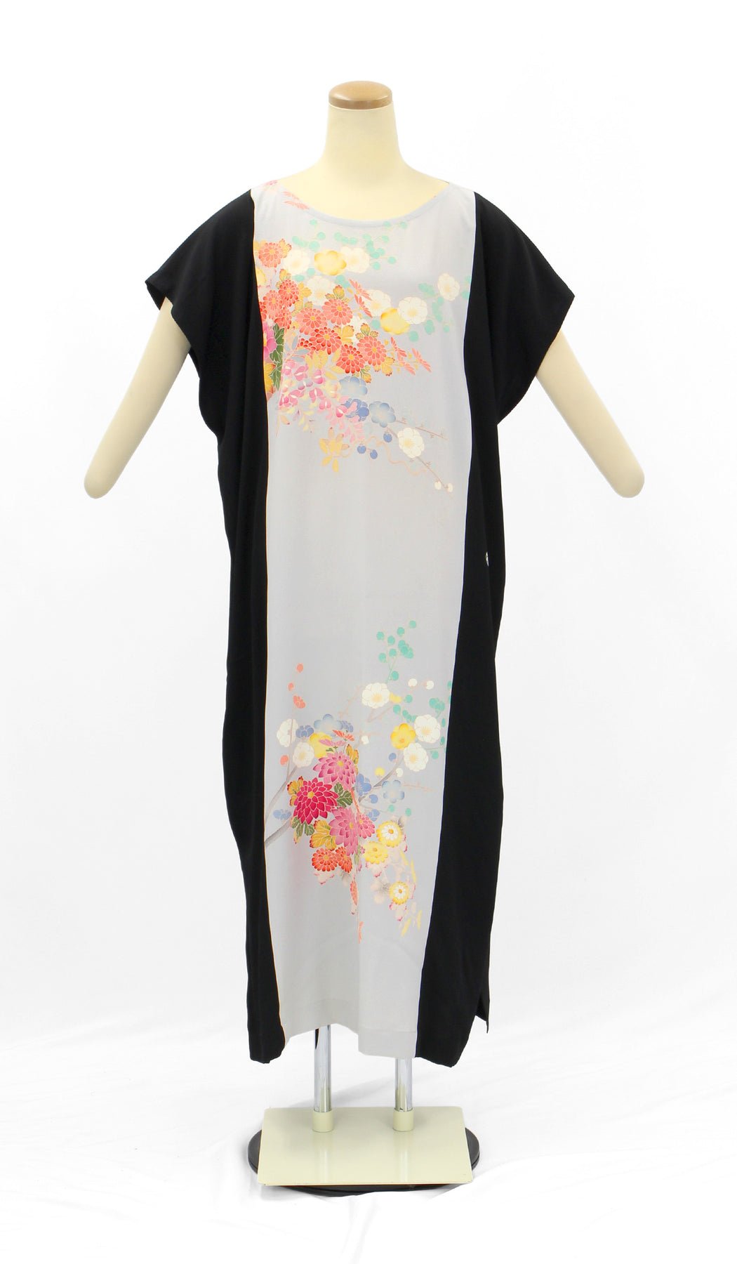 着物の美しい柄を生かしながら、日常でも気軽に楽しんで頂けるようなワンピースにリメイクしました。