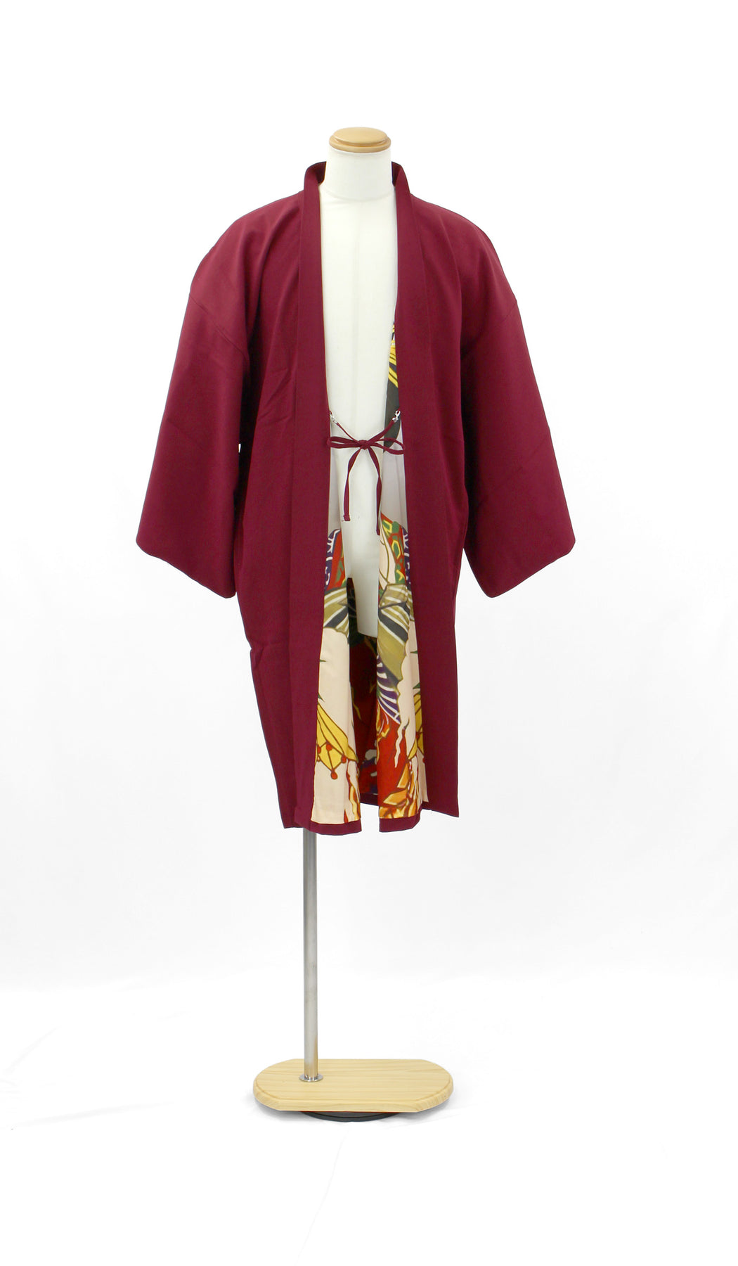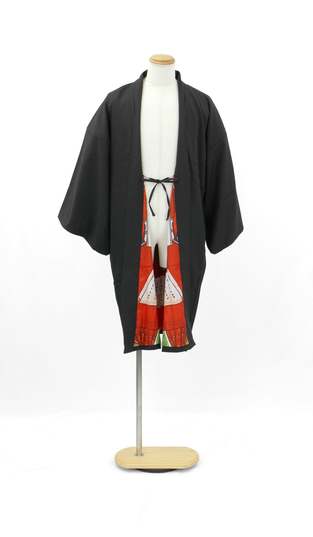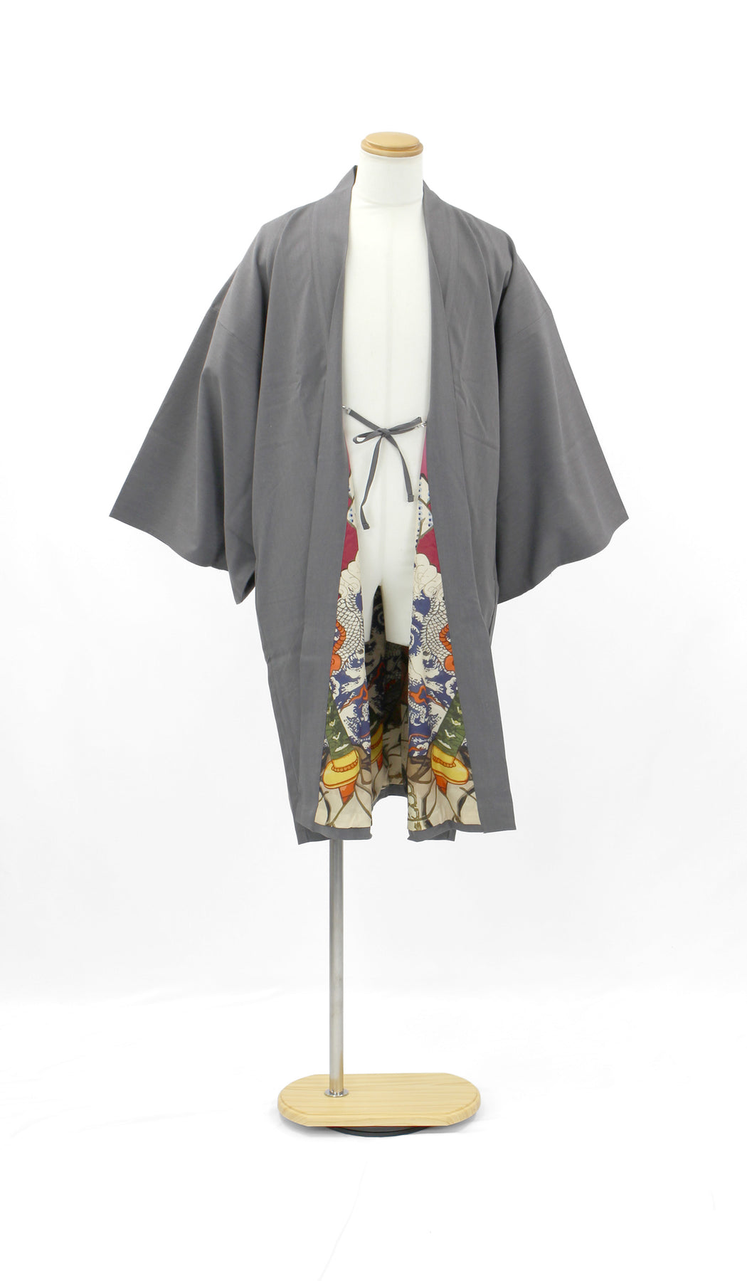 和装はもちろん、洋服の上にも羽織れるデザインです。背中部分の裏地には和風の絵柄が施されており、動きに合わせてさりげなく覗くデザインが、独特の風合いを楽しめます。