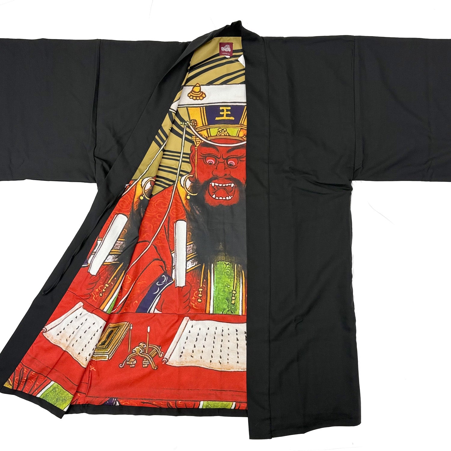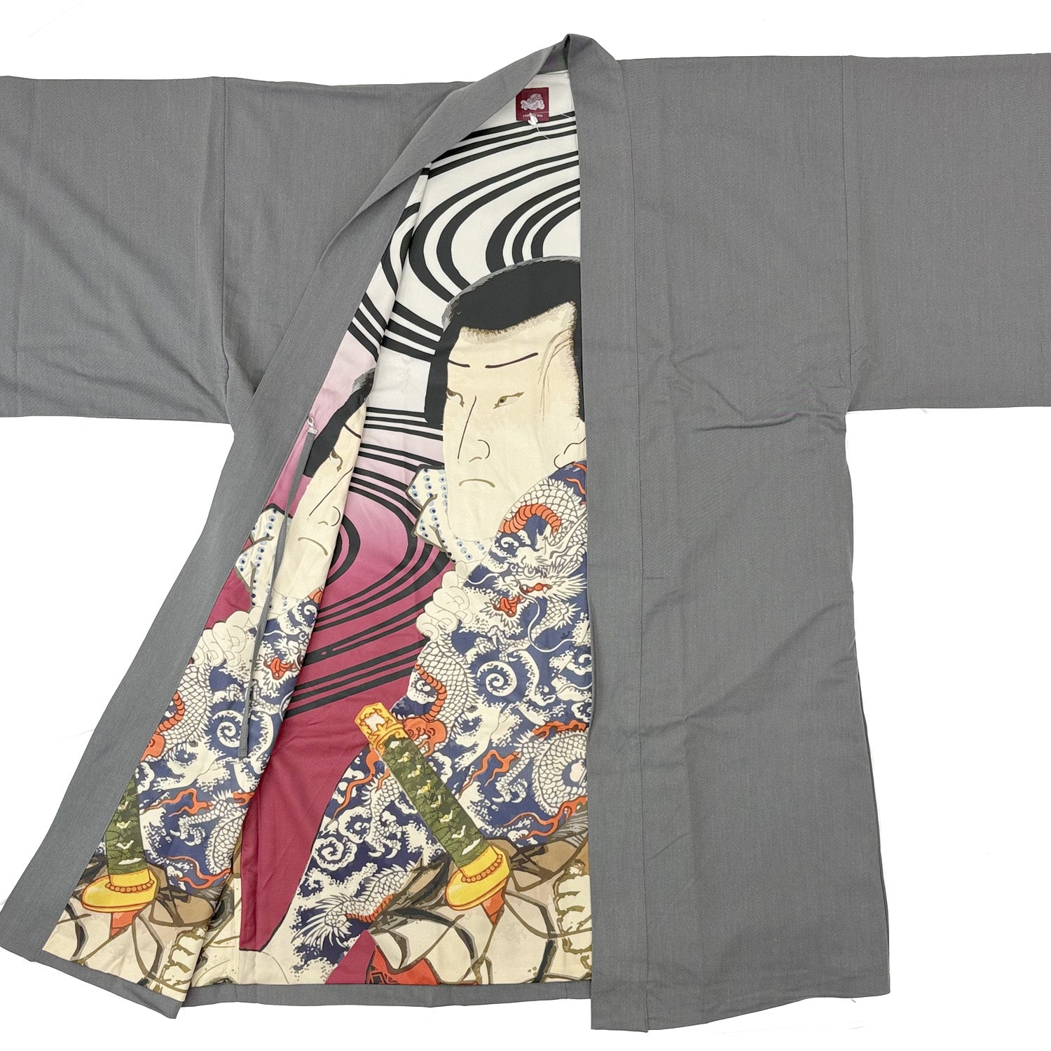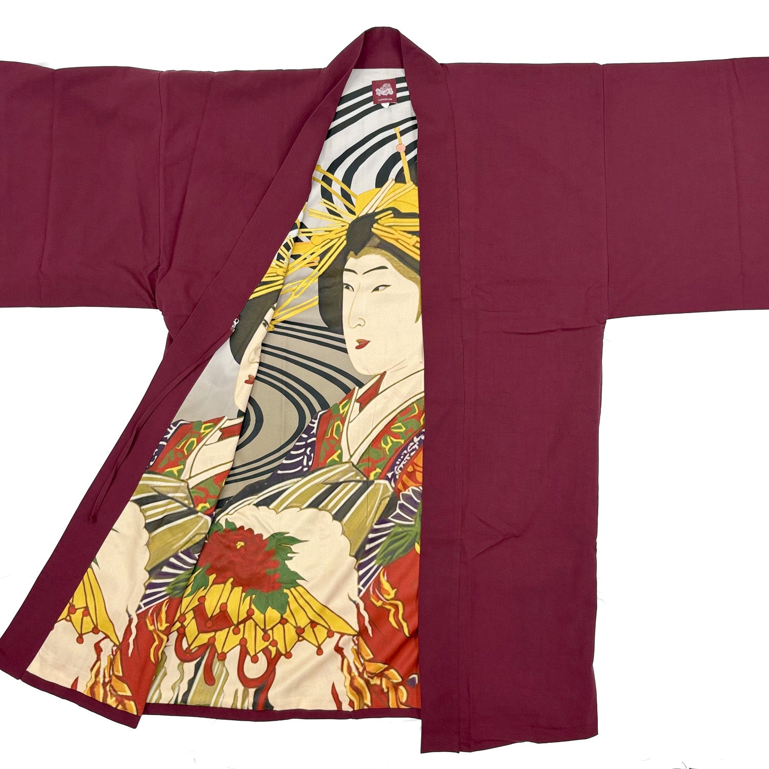 和装はもちろん、洋服の上にも羽織れるデザインです。背中部分の裏地には和風の絵柄が施されており、動きに合わせてさりげなく覗くデザインが、独特の風合いを楽しめます。