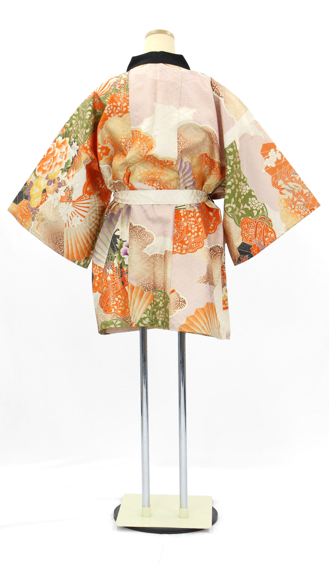着物の美しい柄を生かしながら、日常でも気軽に楽しんで頂けるようなジャケットにリメイクしました。