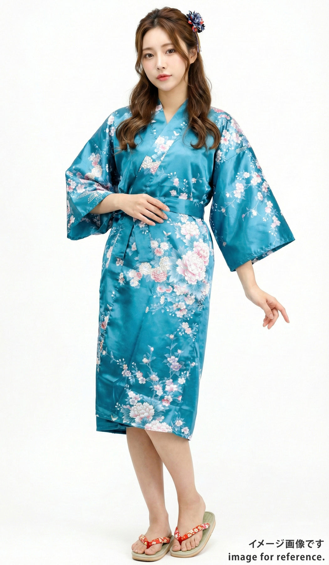 鮮やかな牡丹とアヤメがあしらわれた一着。