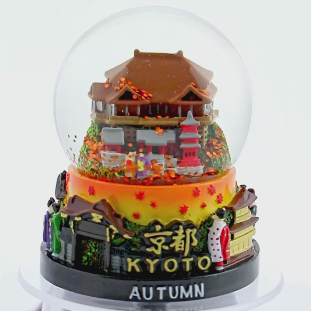 色鮮やかに染まった紅葉が風に舞う、秋ならではの情景を表現したスノードームです。