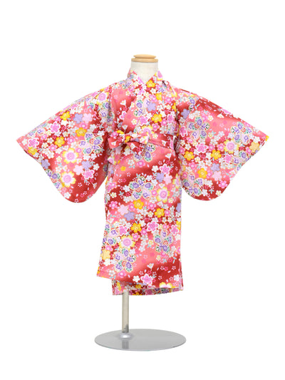 This is a children's kimono with lots of flowers painted on it.