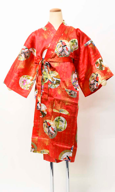 This garment depicts a Heian era aristocratic princess and kana characters typical of Heian era culture.