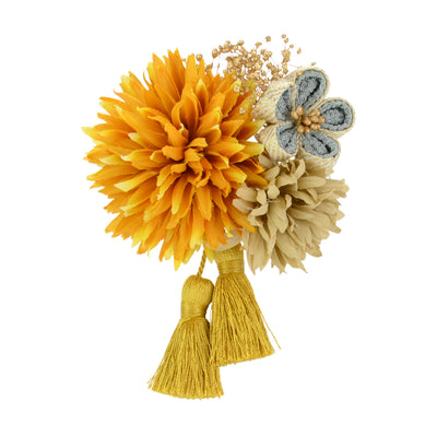 A cute clip-type hair ornament with flowers made from shibori fabric.