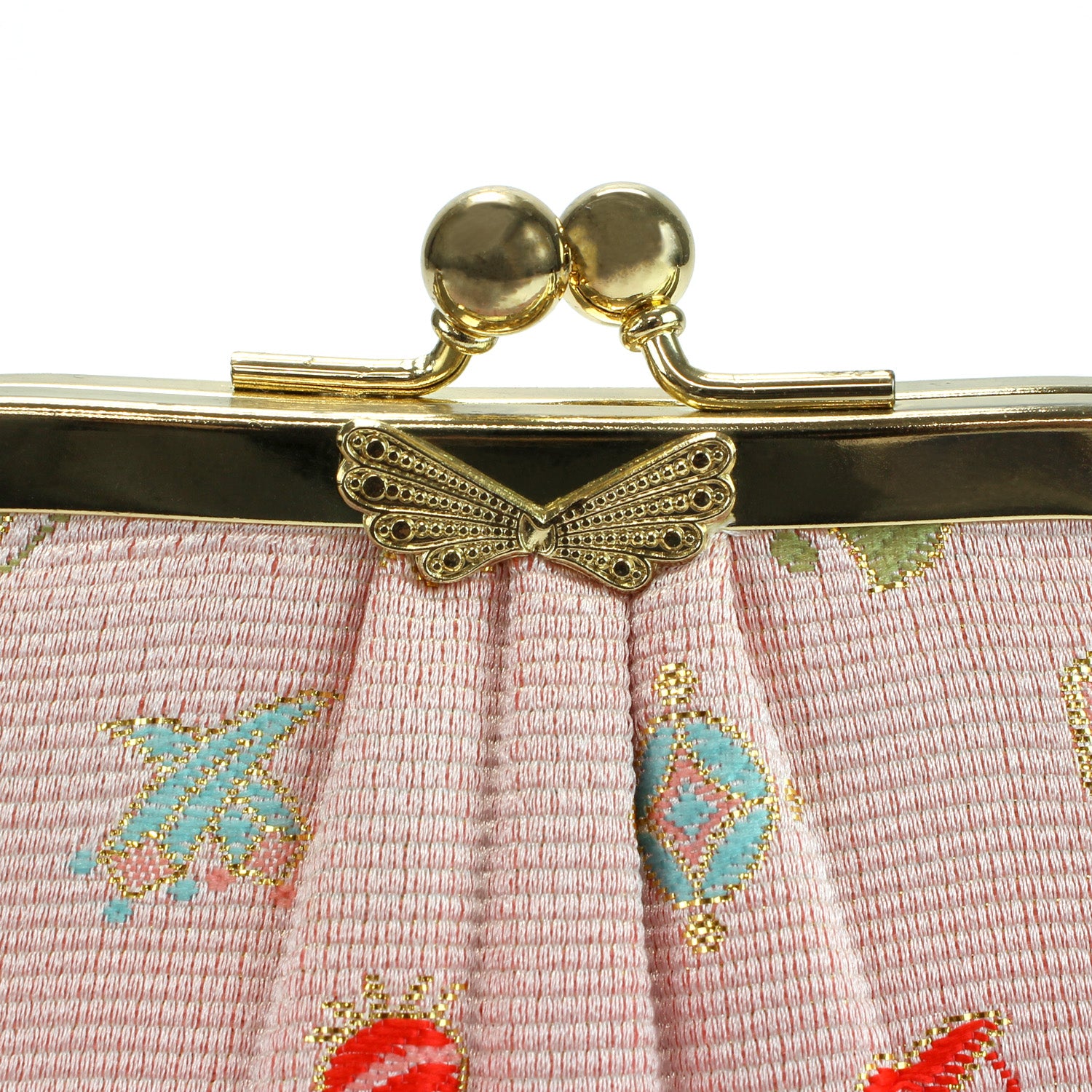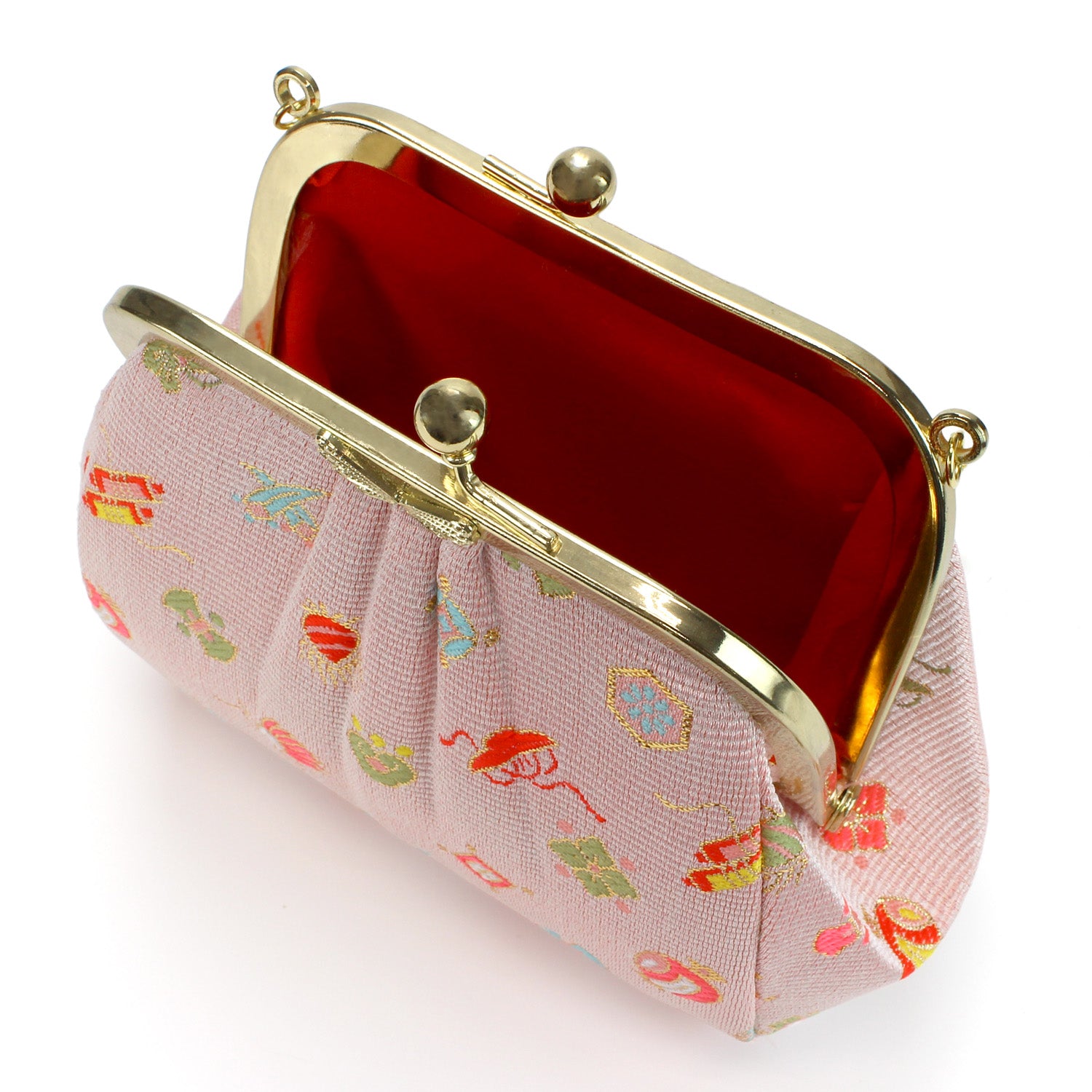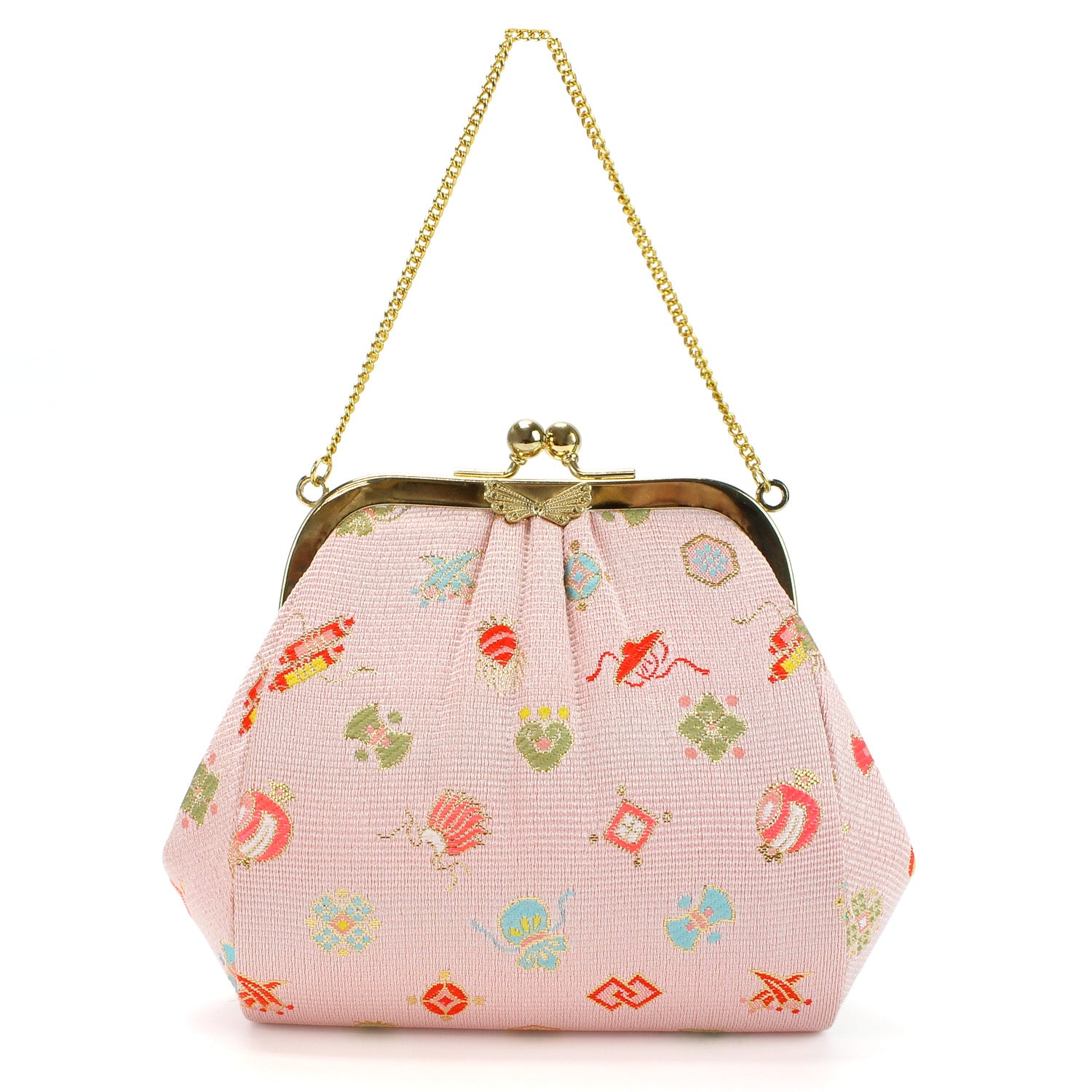 装飾付きの金色フレームを採用したバッグで、大きく開く開口部により中身が見やすく、出し入れもスムーズ。