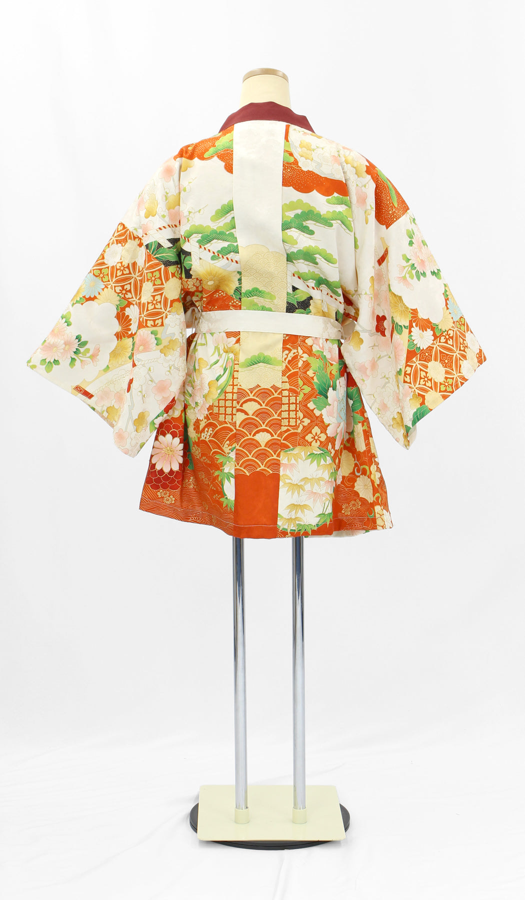 This kimono has been remade into a jacket that can be enjoyed casually in everyday life, while still showcasing its beautiful pattern.