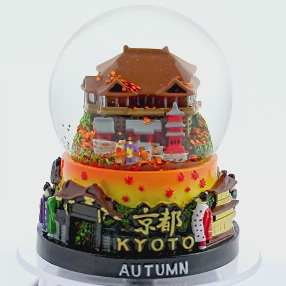 The base features a sculpted maiko enjoying a famous Kyoto landmark adorned with autumn foliage,