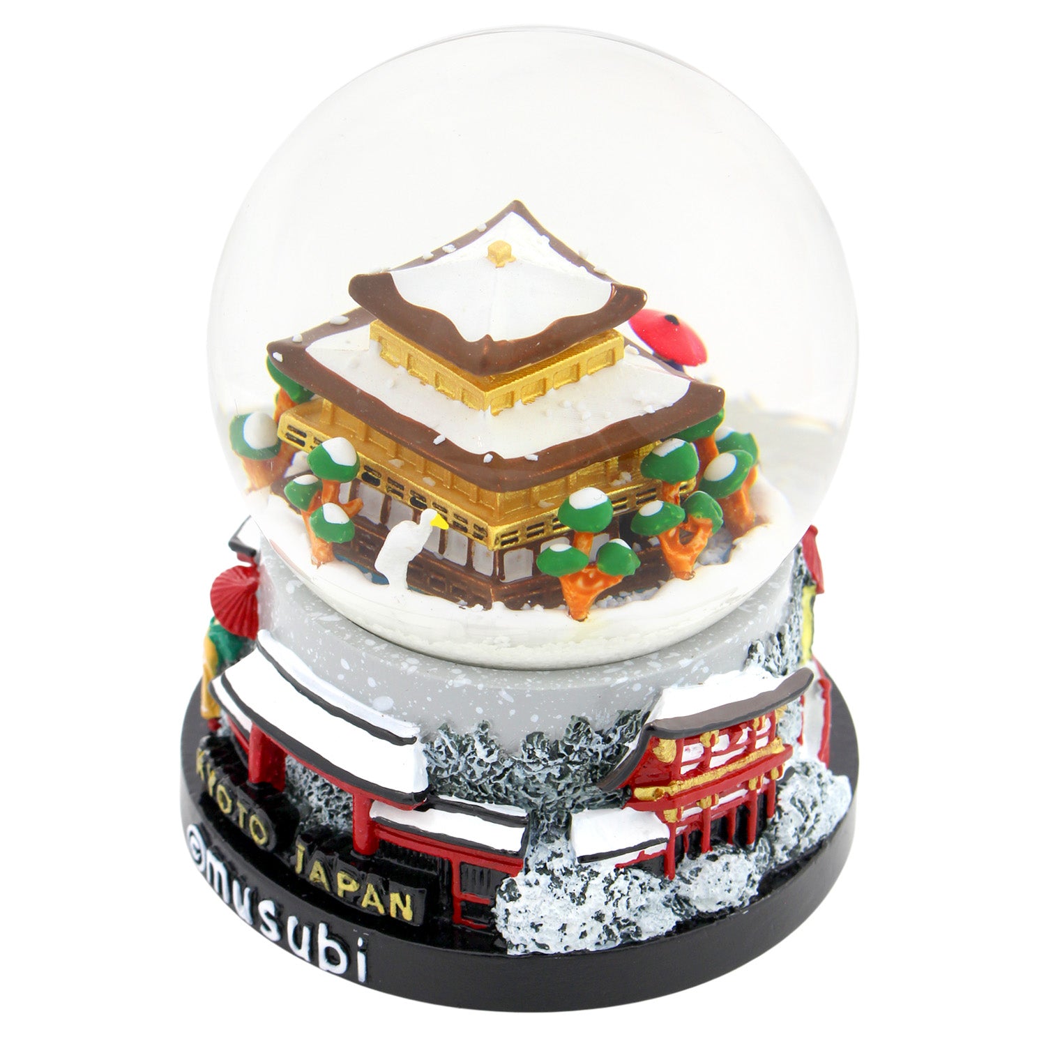 this snow globe captures a serene winter scene of soft, cotton-like snow gently falling upon the gold-leaf-covered Shariden Pavilion.