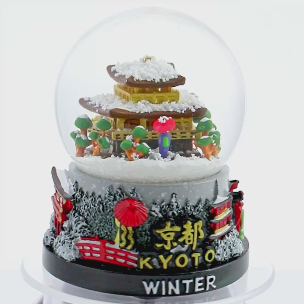 The base features a sculpted maiko enjoying a famous Kyoto landmark adorned in snow,