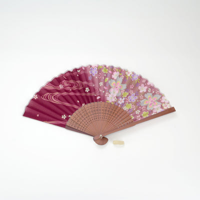 This fan has a stylish design featuring flowing water and cherry blossoms.