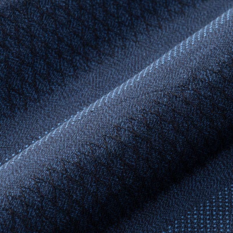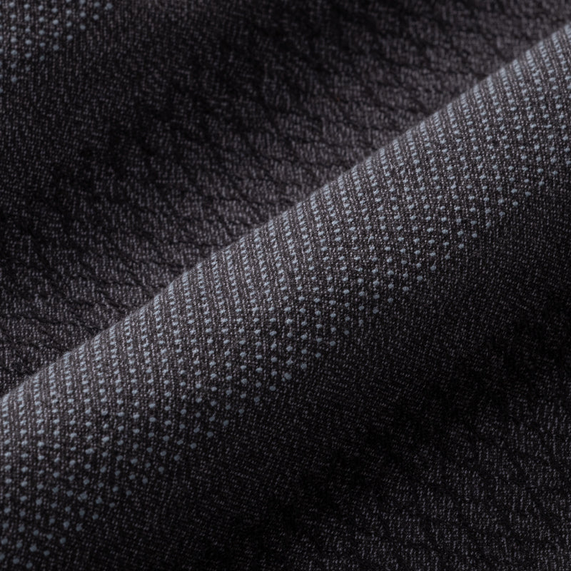色の異なる三本の糸を撚り合わせて表情を出した三子撚杢糸を使用し、ドビー刺子の立体的な織り柄を表現。