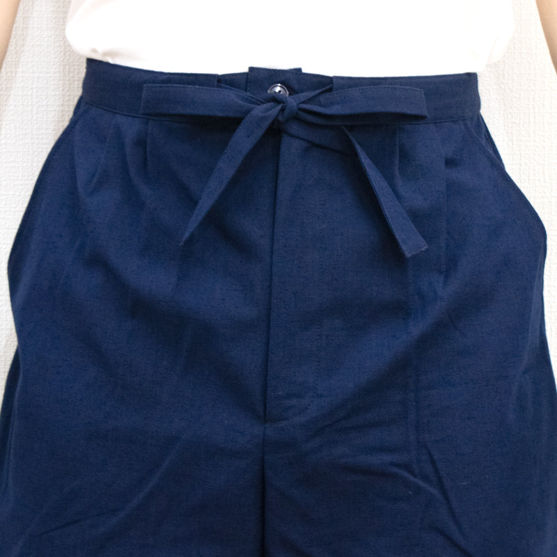 ズボン:両サイドポケット/ウエスト調節(前:ボタン・共布ヒモ、後ろ:ゴム)/裾ヒモ/ファスナー付